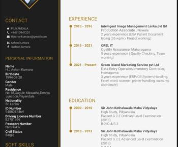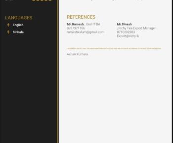 My name is Ashan, and I am writing to express my keen interest in a suitable position within your organization. I am 31 years old and currently residing in Halbarawa, Padukka, Sri Lanka. I am a past student of Piliyandala S.J.K.M.V College and hold a Diploma in MS Office.