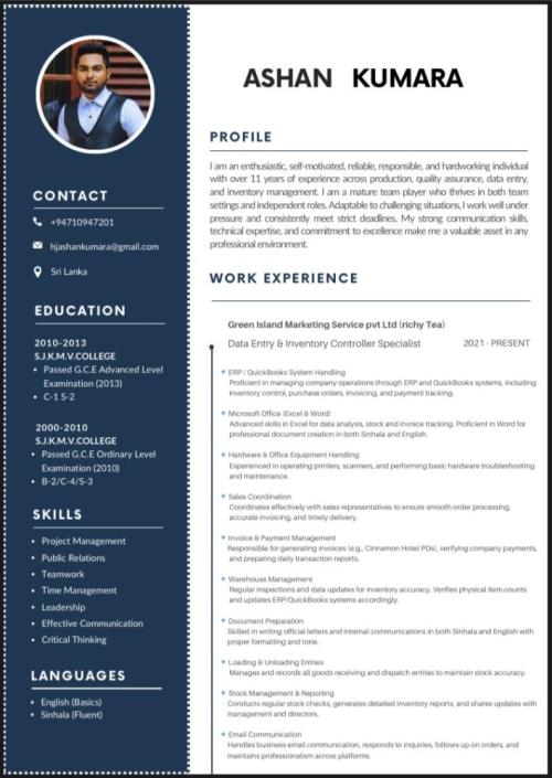 My name is Ashan, and I am writing to express my keen interest in a suitable position within your organization. I am 31 years old and currently residing in Halbarawa, Padukka, Sri Lanka. I am a past student of Piliyandala S.J.K.M.V College and hold a Diploma in MS Office.