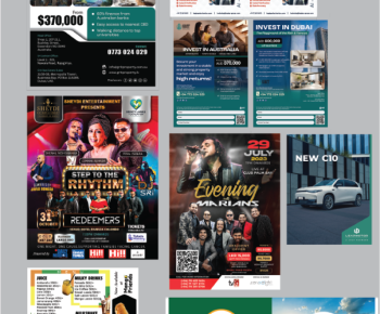 Brochures, leaflets, flyers, catalogues, posters, banners, signage layouts.