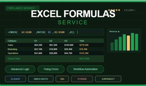 I provide high-level Excel engineering to automate your manual tasks and fix complex spreadsheet errors. Whether you need to repair broken formulas, streamline data entry, or create dynamic reports, I deliver clean and scalable solutions.
