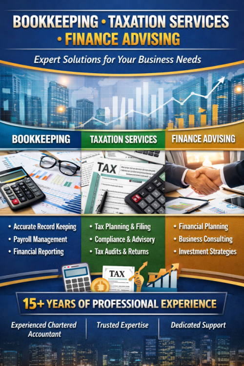 I am a partly qualified Chartered Accountant with expertise in accounting, bookkeeping, taxation services, and financial advisory. I assist businesses in maintaining accurate financial records, ensuring tax and regulatory compliance, and improving financial performance through practical financial guidance
